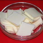 Cut the butter into small pieces. Cubes would be most appropriate, but I’m lazy, so I just did thin slices. However you cut the butter, make sure it stays cold. Put it back in the fridge to keep chilled if necessary (for example, if you slice it before you measure the flour)