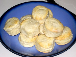 I made some biscuits this morning, partly because I’d posted a comment over at my friend Katelyn’s blog little woman, but mostly because I just wanted some biscuits with breakfast. They turned out OK, although I’d have liked for ’em to be a little more brown on the tops. Ah, well. “Read More” for the recipe.