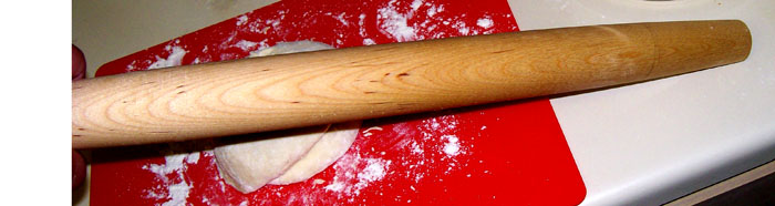 Grab your favorite rolling pin (mine’s this nifty French-style rolling pin, which features no moving parts), and roll the dough out until it’s about a half-inch thick.