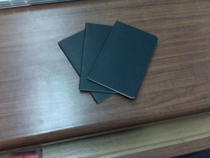 The hardest part of starting to write in a new notebook is actually making the first mark on the first page. I find it difficult to come up with something “good enough” or “witty enough” or “befitting the purpose of the book”. Hopefully, I’ll change that with these stack of Cahiers. They’re small and relatively inexpensive (more an upscale notepad than anything else), so I won’t feel too bad about using it for anything I’d like, as opposed to the hard-bound Moleskine notebooks that I carry around in my bag, which I’ve yet to fill even a third of the way out of a desire to make sure that what I write is “worth it”.